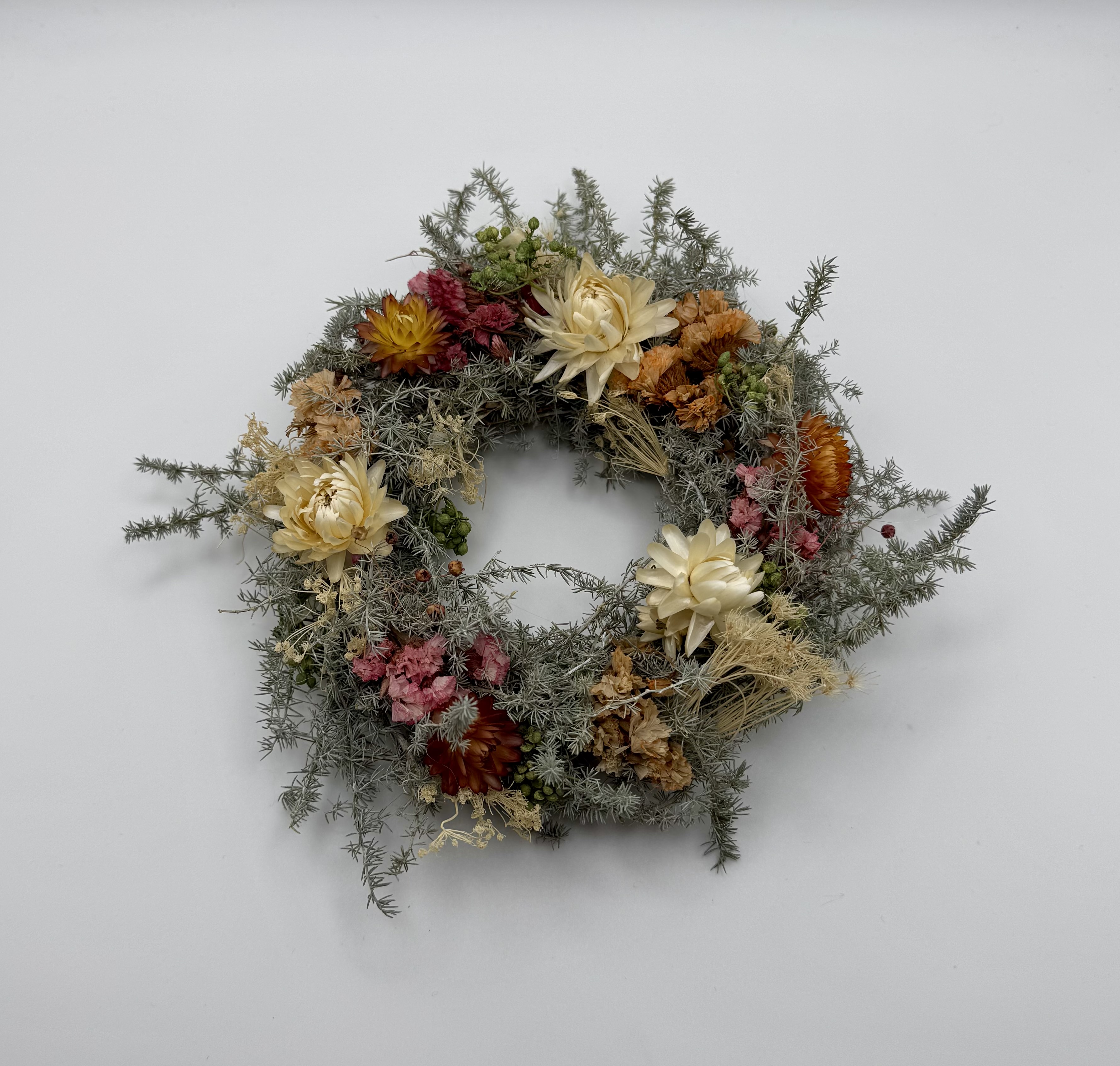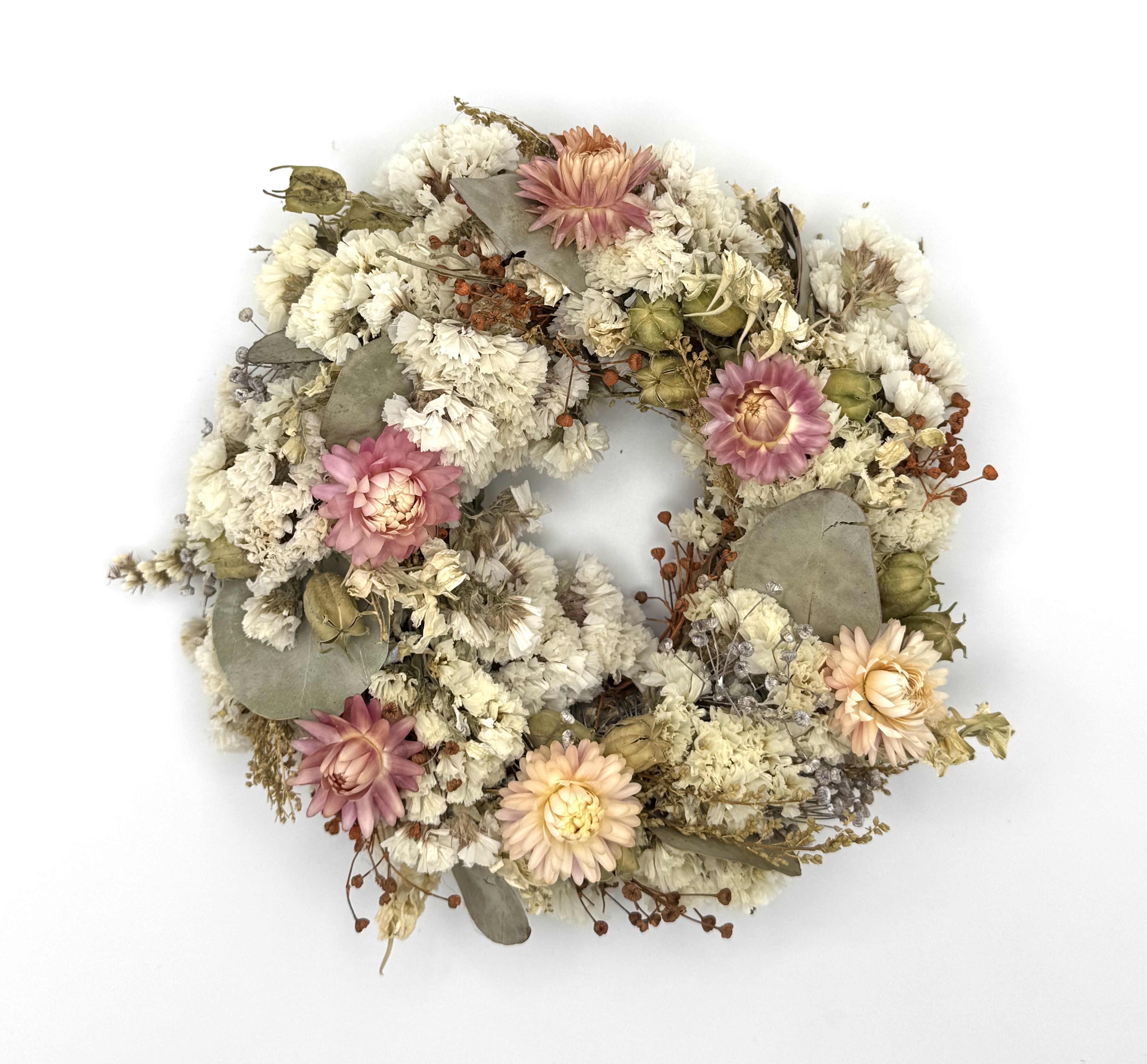 Erlebe die Schönheit unserer handgefertigten Trockenblumenkränze.