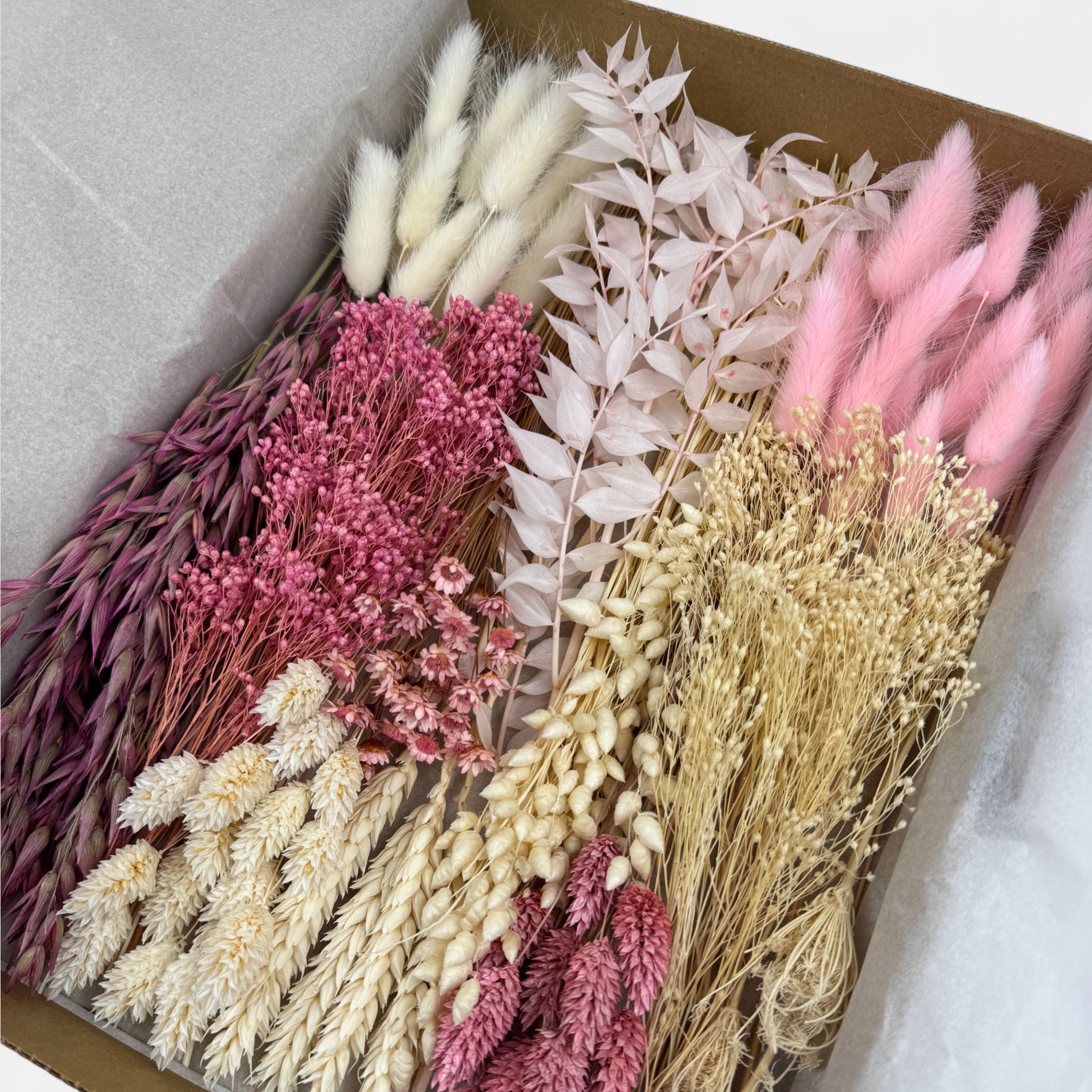 Entdecke unsere handverlesenen Trockenblumenboxen für deine DIY-Projekte.