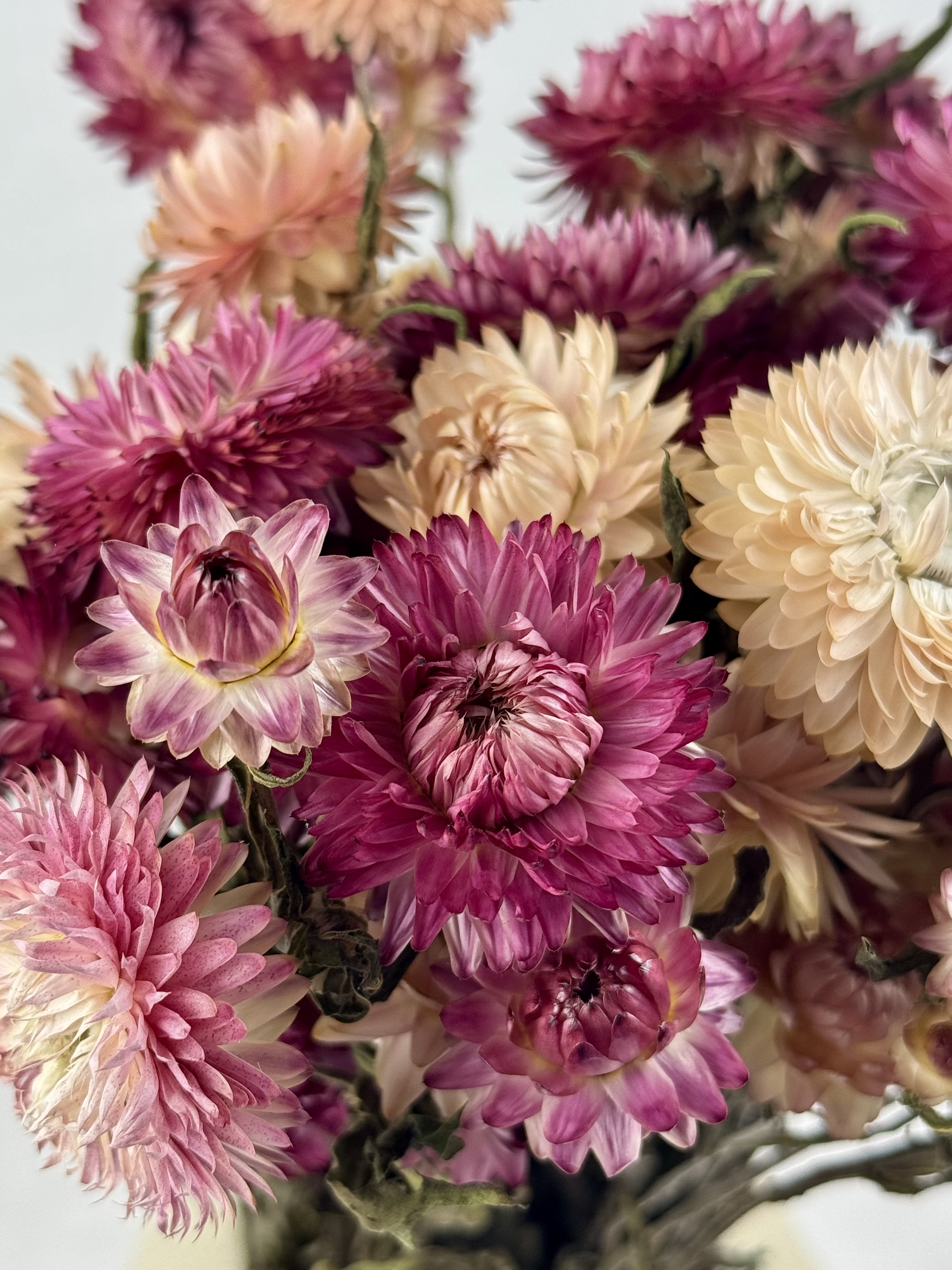 Unsere Trockenblumen sind die perfekte Kombination aus zeitloser Schönheit und Nachhaltigkeit. Sie brauchen kein Wasser, halten lange und sind besonders pflegeleicht.