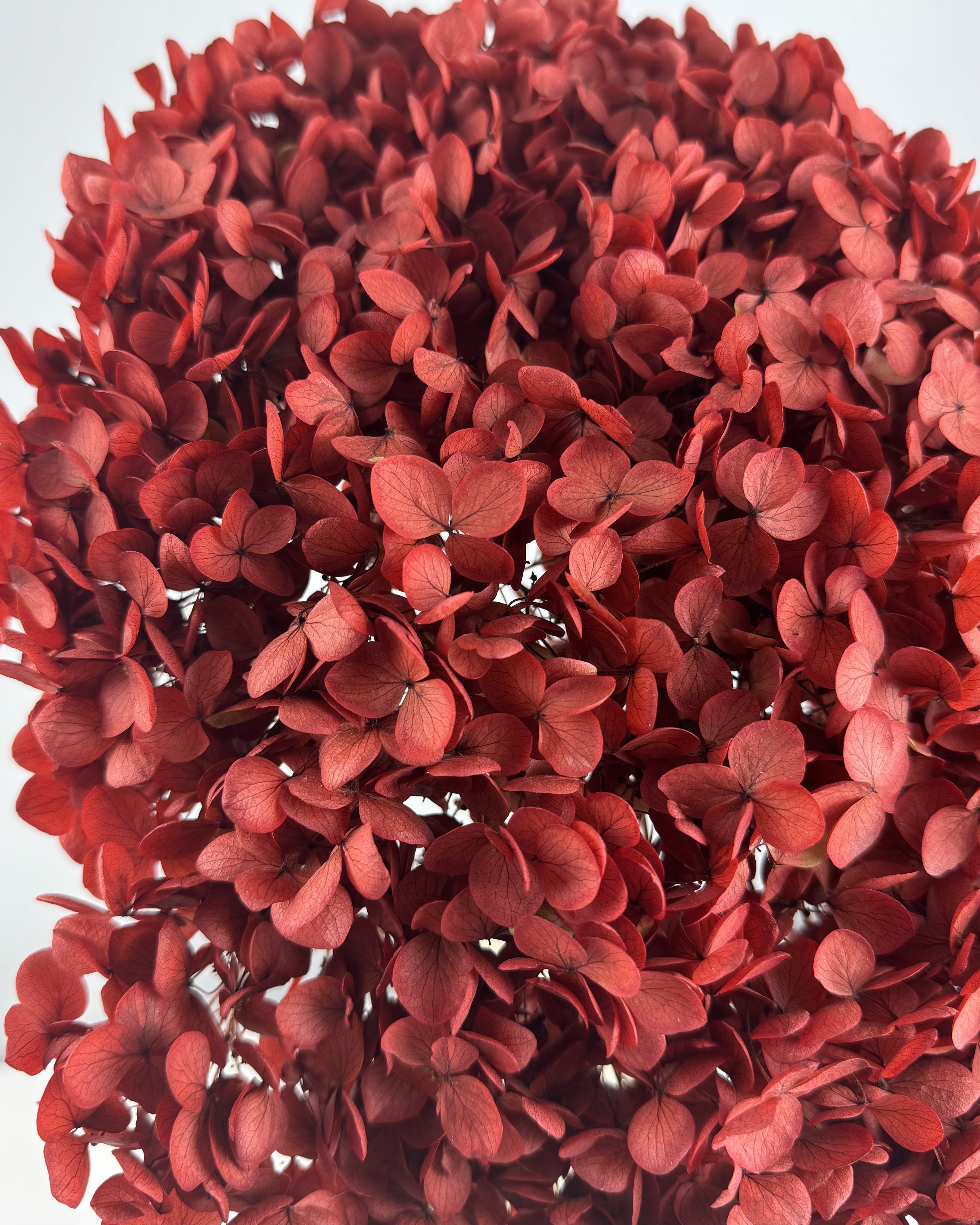 Unsere große, stabilisierte Anna-Hortensie in rot ist ca. 30–50 cm lang und der Kopf ist ca. 20 cm breit.