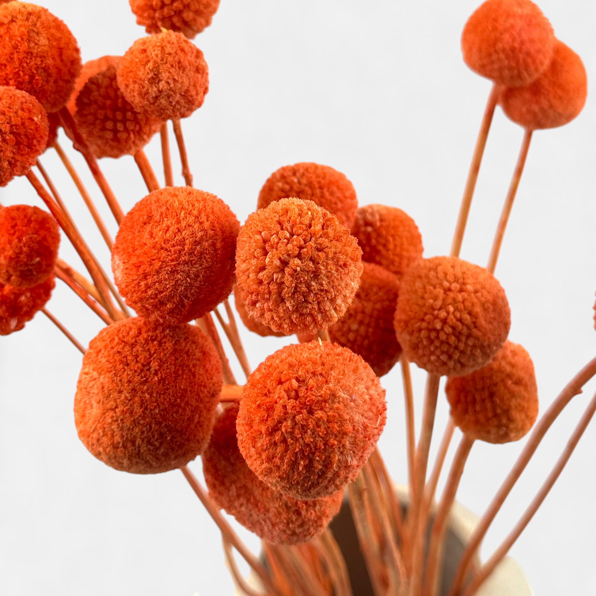 Ob einzeln in einer schlichten Vase, im Trockenblumenstrauß oder als besonderer Farbakzent in Kränzen und DIY-Projekten, die Craspedia ist vielseitig einsetzbar und ein echter Eyecatcher. Besonders im Boho-, Scandi- oder Naturstil entfalten die kleinen Sonnenkugeln ihre volle Wirkung.
