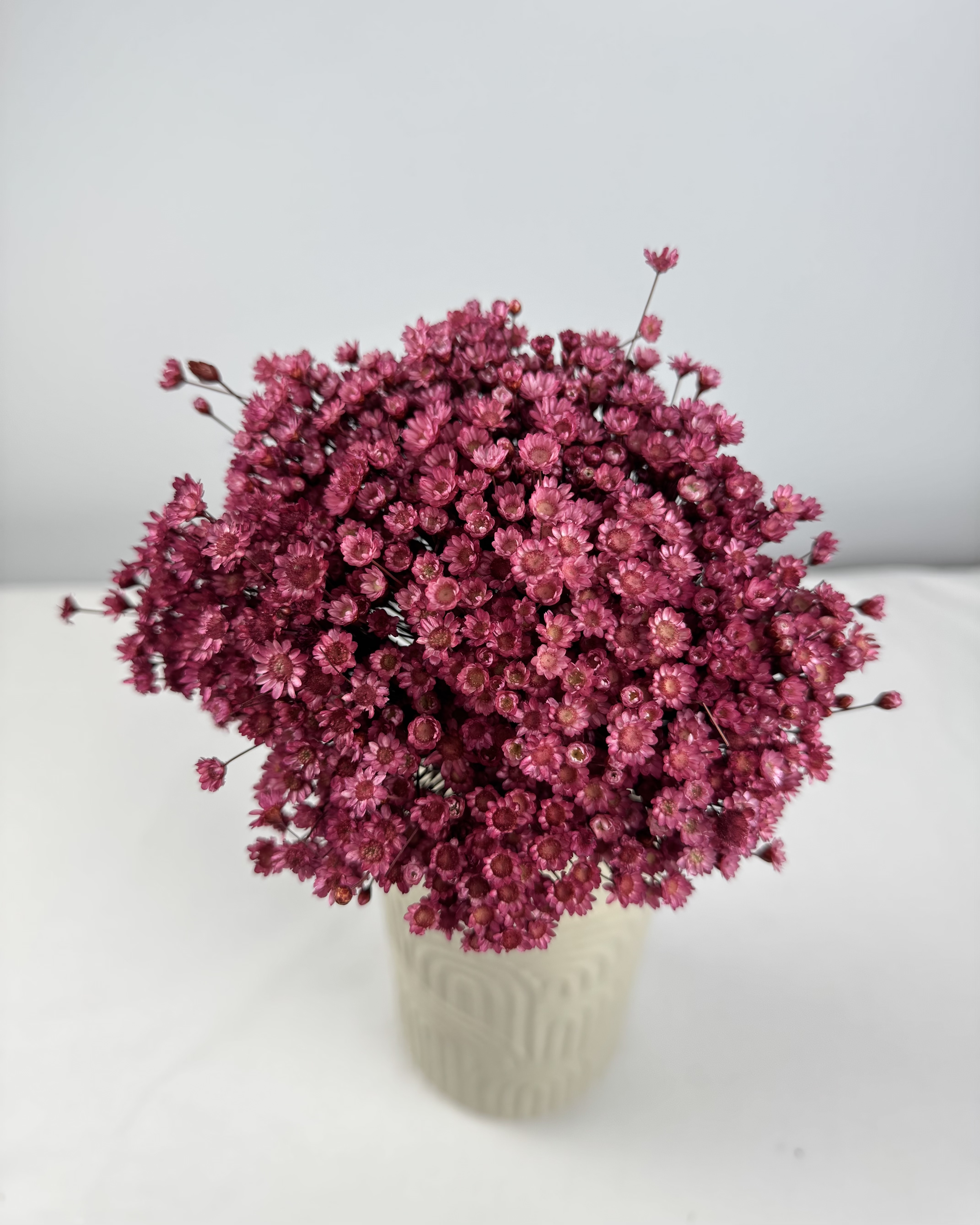 Glixia, auch Sternblume genannt, sind zarte, filigrane Trockenblumen, die jedem Strauß, Kranz oder Gesteck eine luftige Leichtigkeit und romantische Optik verleihen. Sie sind pflegeleicht, langlebig und perfekt für kreative DIY-Projekte oder stilvolle Wohnakzente.
