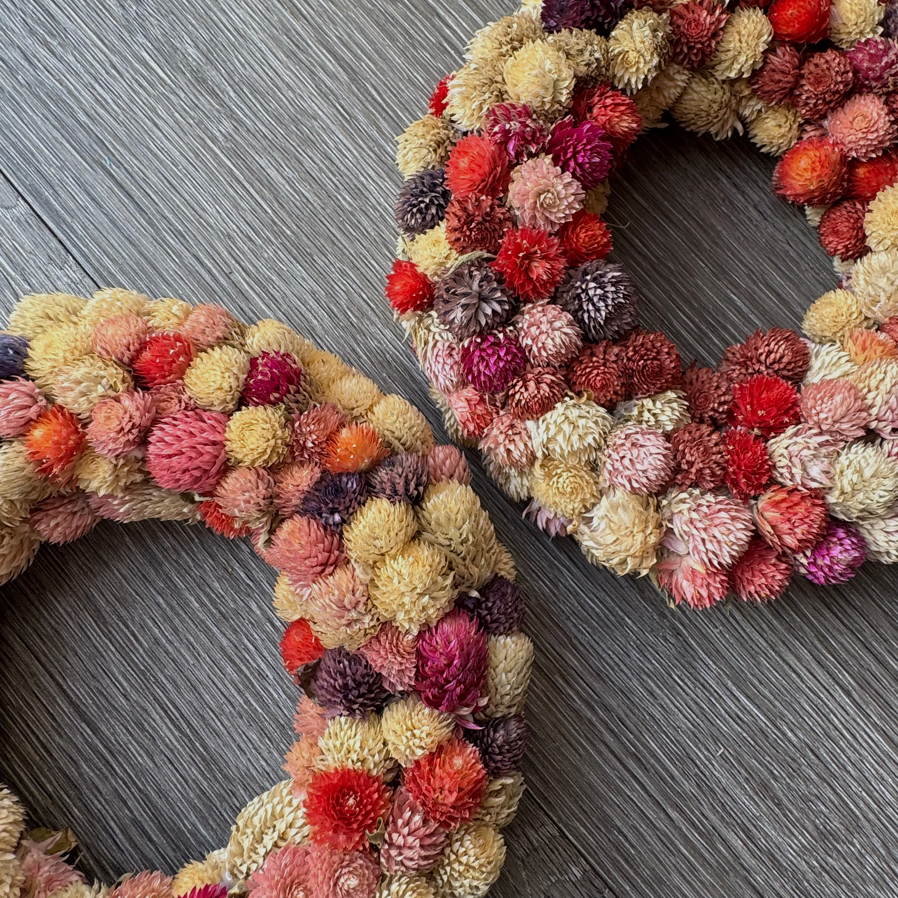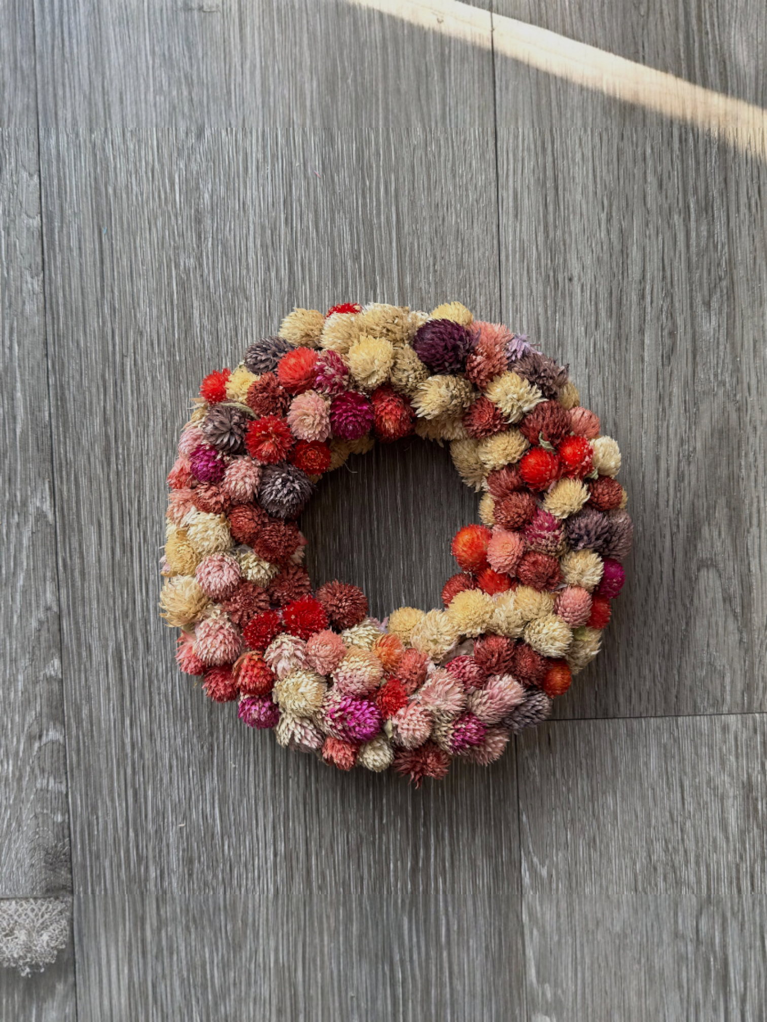Ein kleiner Farbtupfer für jeden Raum, unser einzigartiger Kranz voller Gomphrenablüten bringt natürliche Schönheit direkt zu dir nach Hause! 🌸