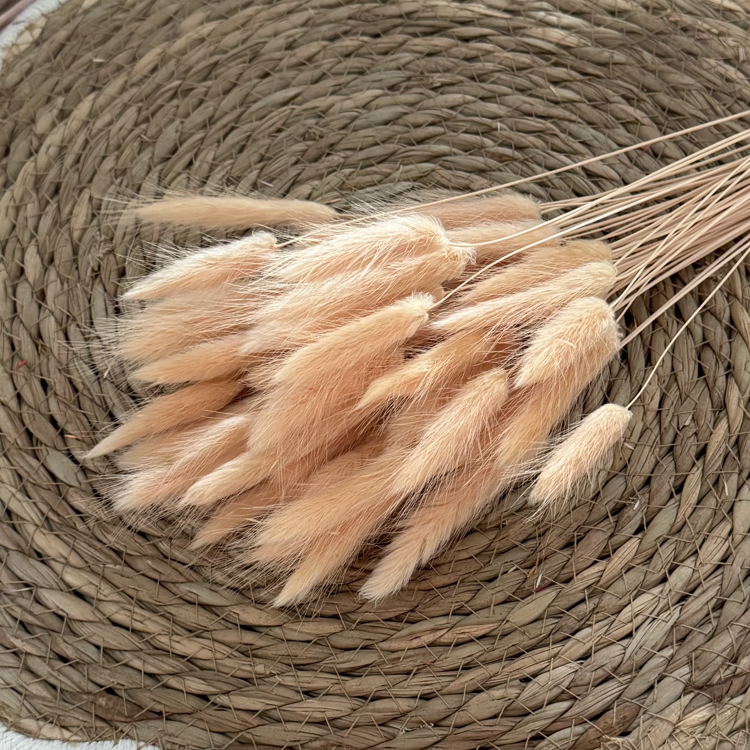 Durch die leichten und flexiblen Stiele eignet sich Lagurus ideal zum Binden von Kränzen. Die flauschigen Köpfe sorgen für Volumen und eine weiche Struktur, ohne dabei zu dominant zu wirken. Auch in Sträußen, Gestecken oder Trockenblumenringen lässt sich Lagurus vielseitig einsetzen und gut mit anderen Trockenblumen wie Eukalyptus, Pampasgras, Ruscus oder Phalaris kombinieren.