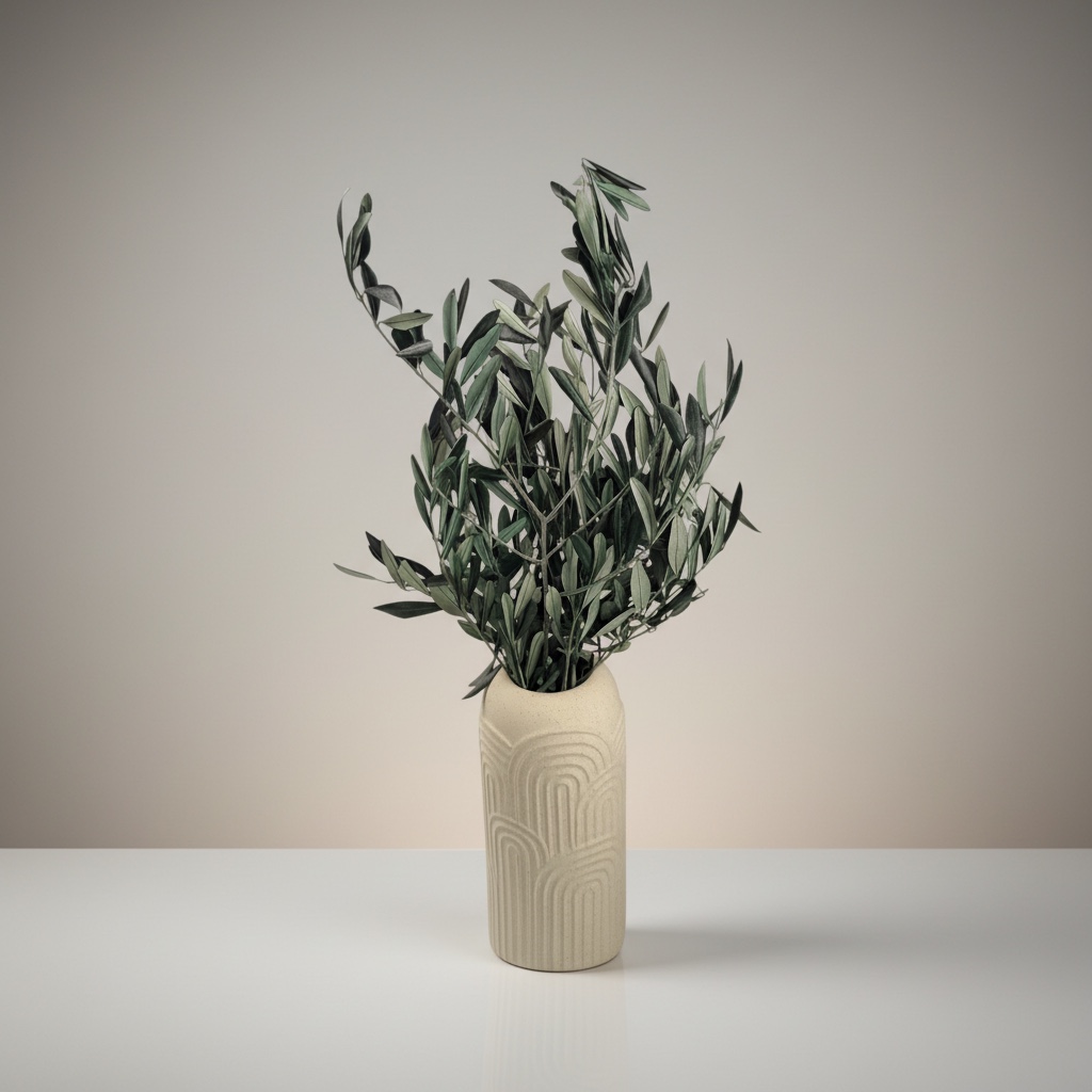 Ob als einzelner Blickfang in einer schlichten Vase, als Teil eines modernen Arrangements oder eingebunden in Kränze und Dekorationen, Olivenzweige stehen für Natürlichkeit, Leichtigkeit und zeitlose Ästhetik. Sie passen perfekt zu minimalistischen Wohnstilen, harmonieren aber genauso gut mit warmen, rustikalen Akzenten.