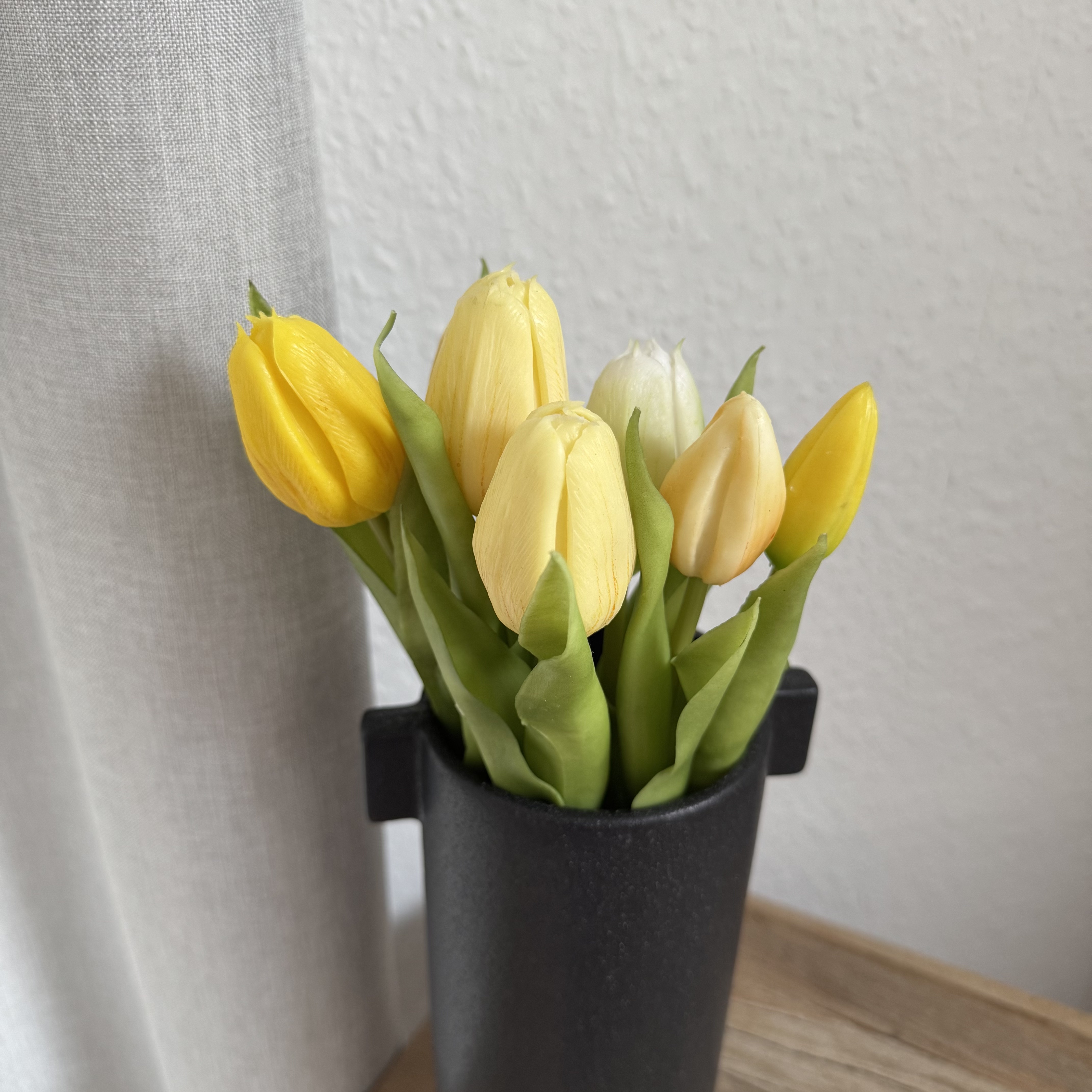 Dieser hochwertige künstliche Real Touch Tulpenbund begeistert mit seiner täuschend echten Optik und sorgt dauerhaft für eine frische, freundliche Atmosphäre. Die geschlossenen Blüten wirken besonders natürlich und machen die Kunsttulpen zu einer stilvollen Alternative zu frischen Blumen.