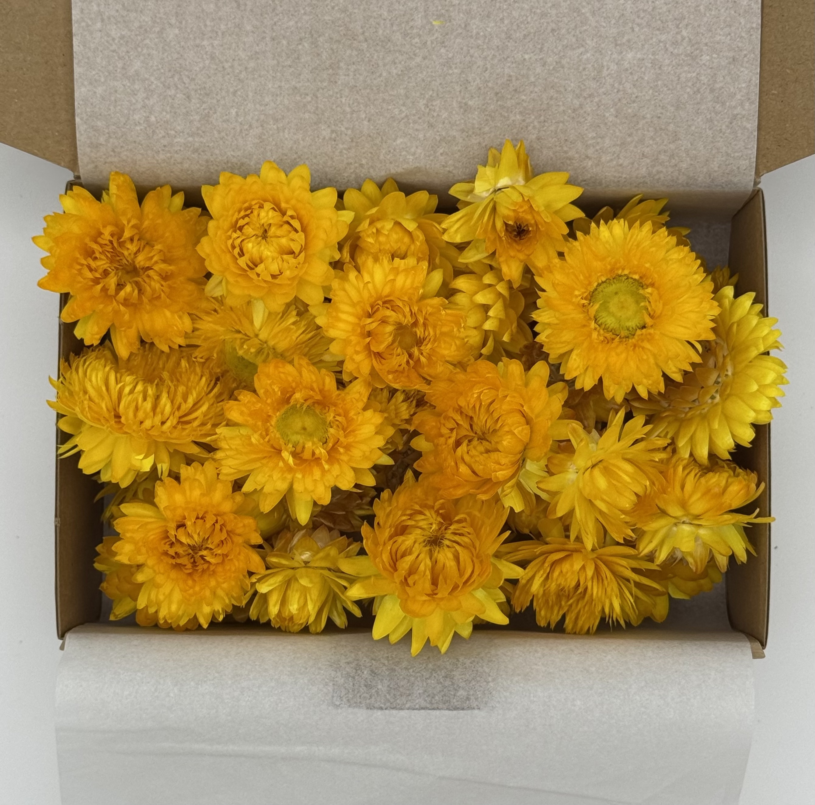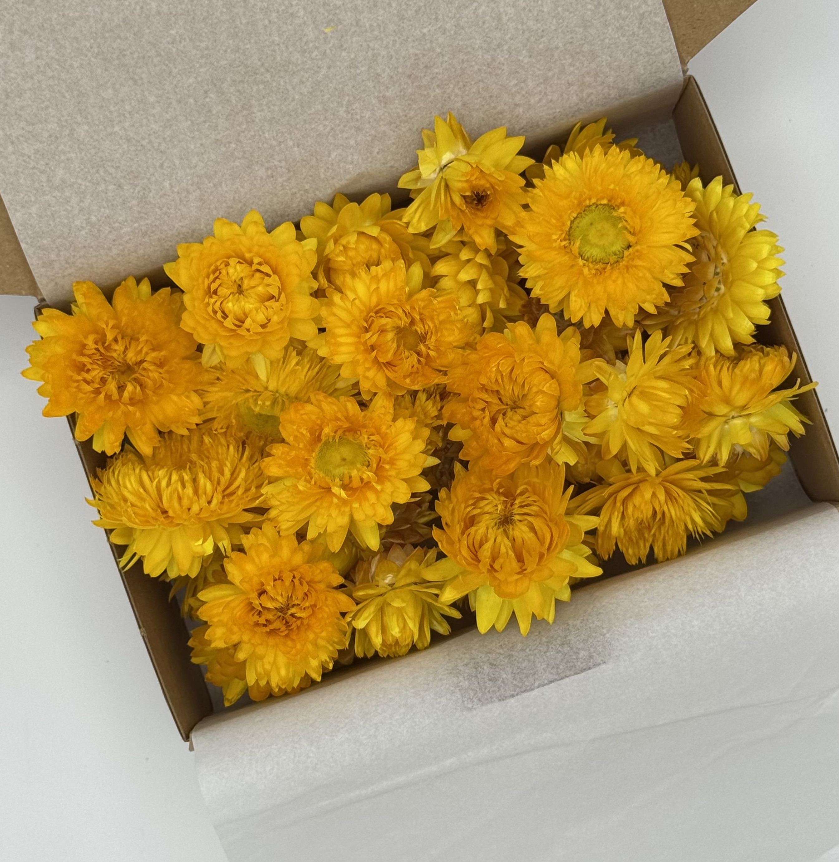 Jede Strohblumenbox wird liebevoll von Hand für dich zusammengestellt, sodass jede Box einzigartig ist.