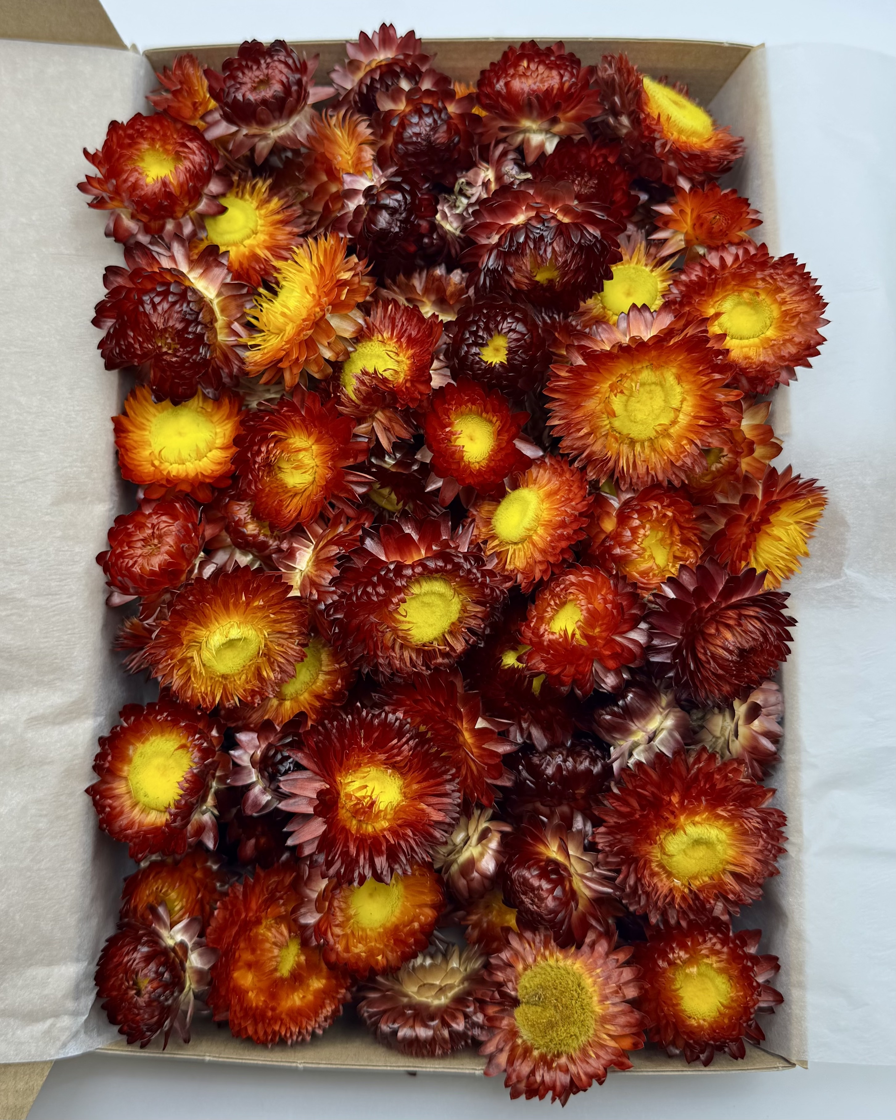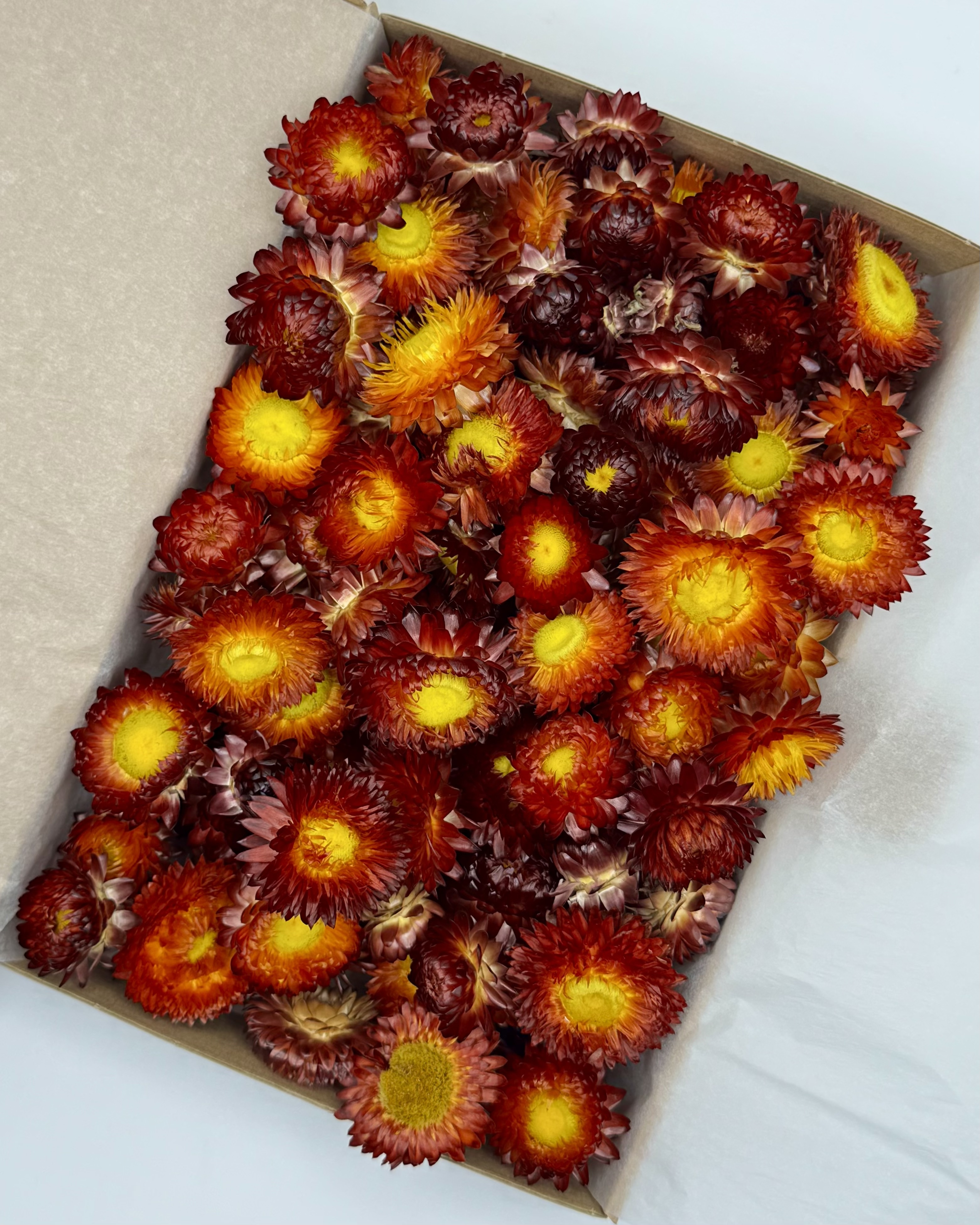 Jede Strohblumenbox wird liebevoll von Hand für dich zusammengestellt, sodass jede Box einzigartig ist.