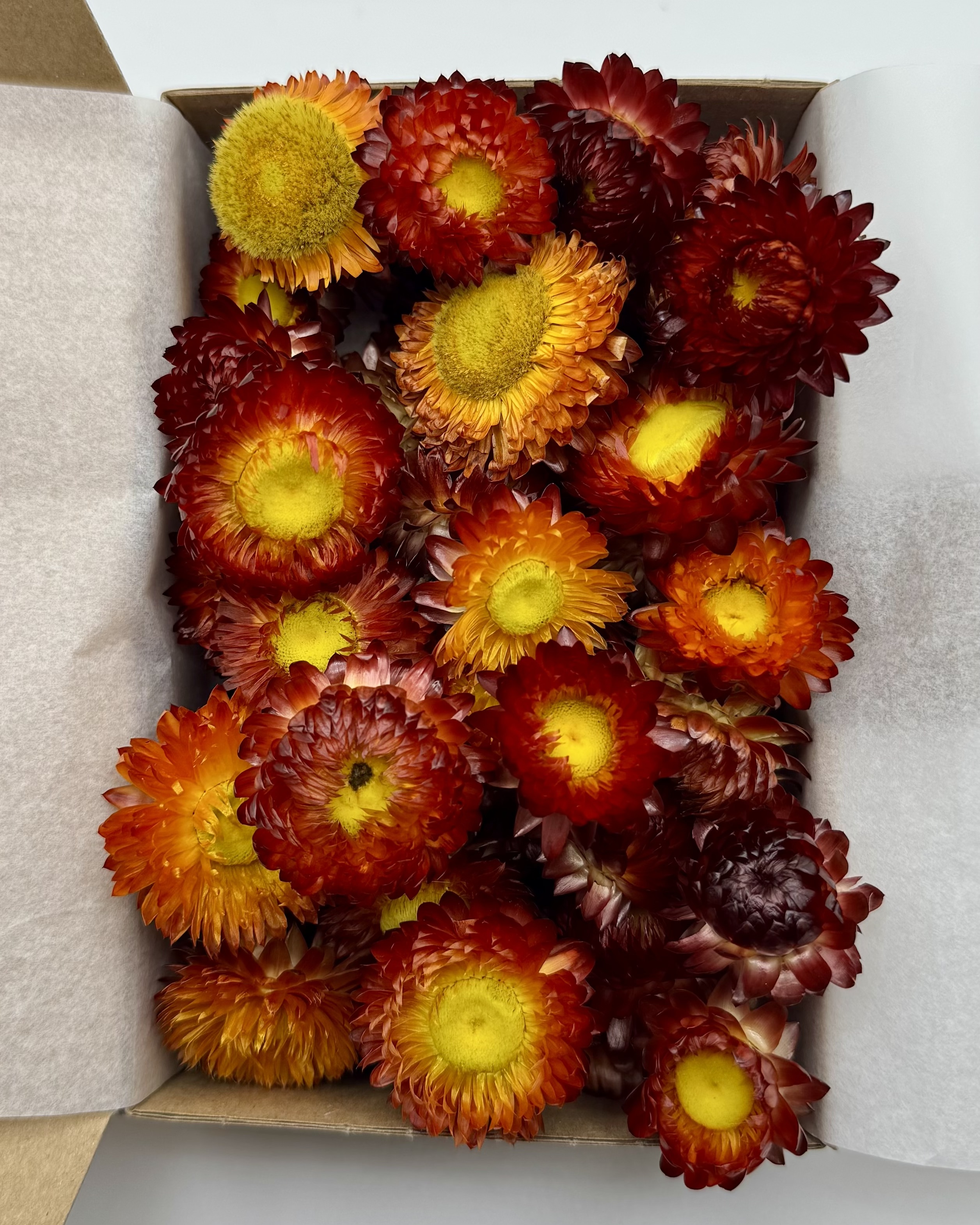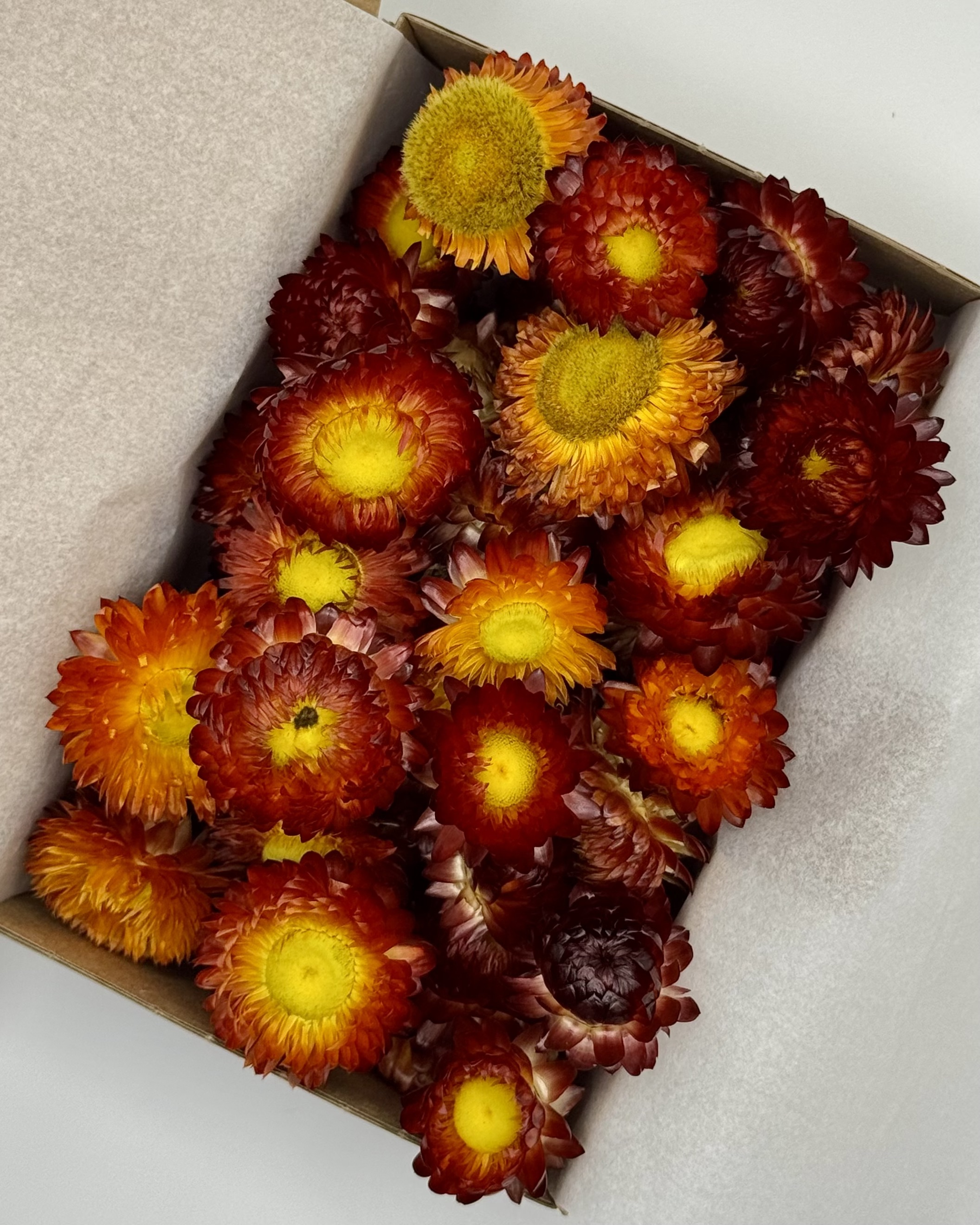 Jede Strohblumenbox wird liebevoll von Hand für dich zusammengestellt, sodass jede Box einzigartig ist.