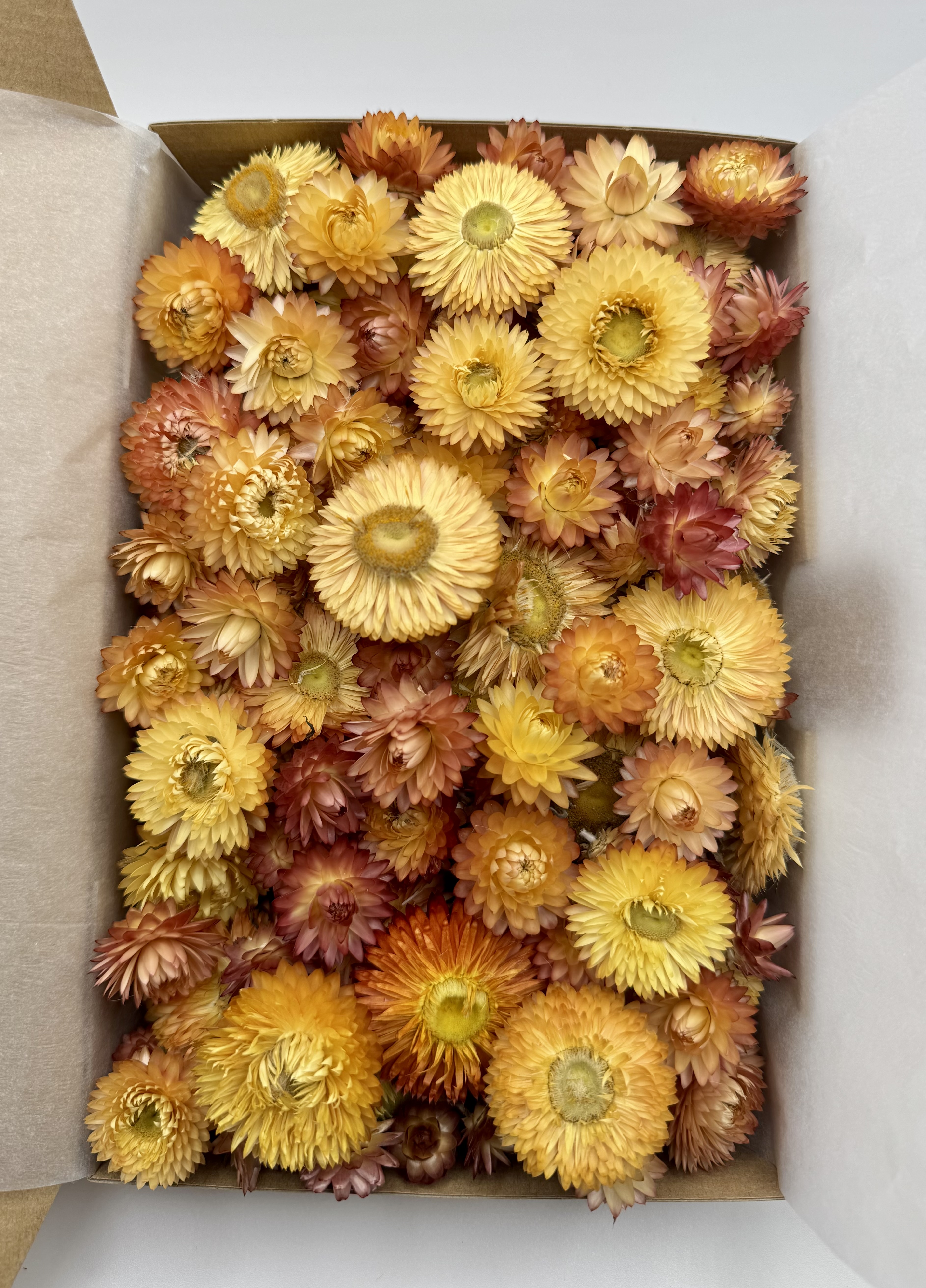 Jede Strohblumenbox wird liebevoll von Hand für dich zusammengestellt, sodass jede Box einzigartig ist.