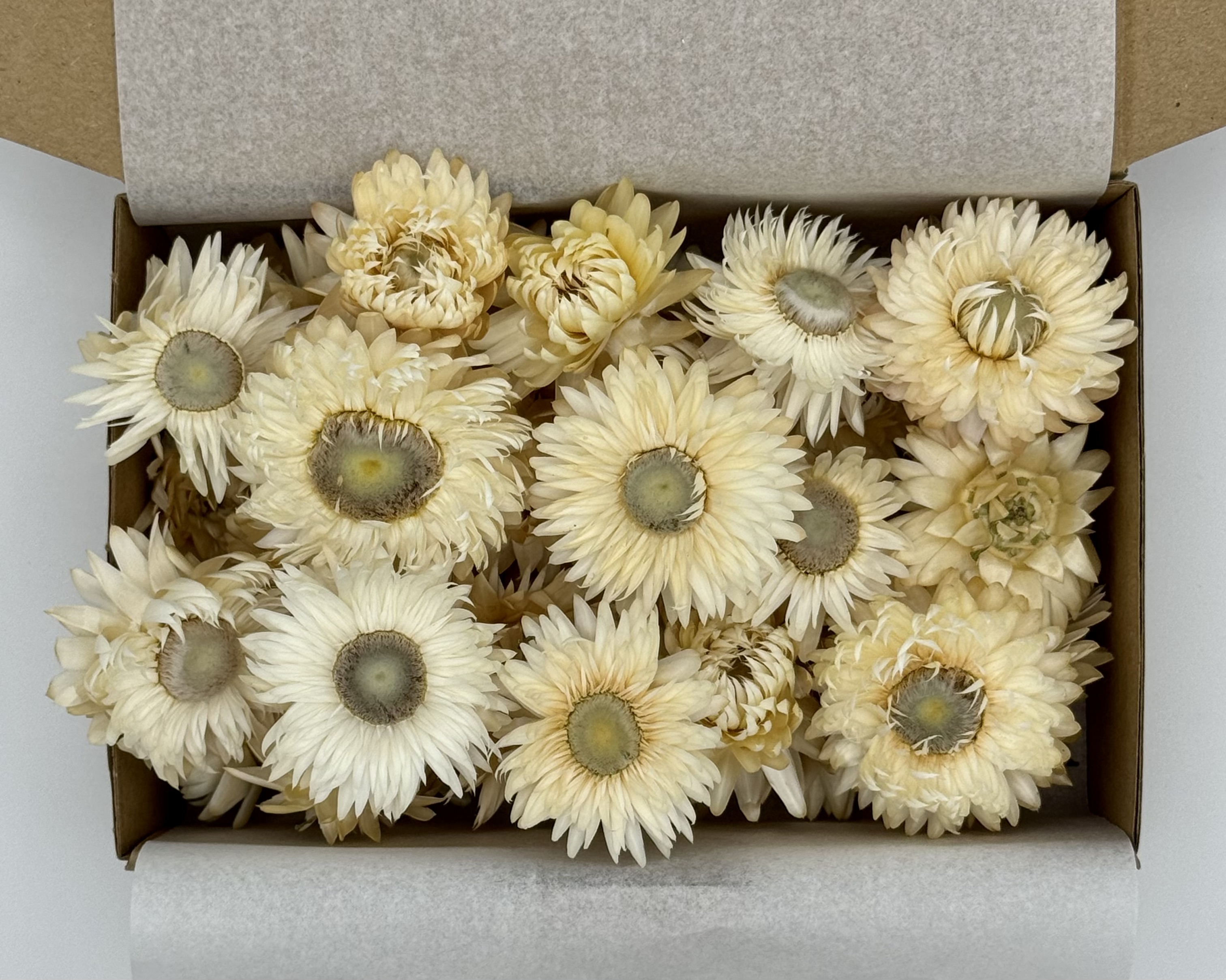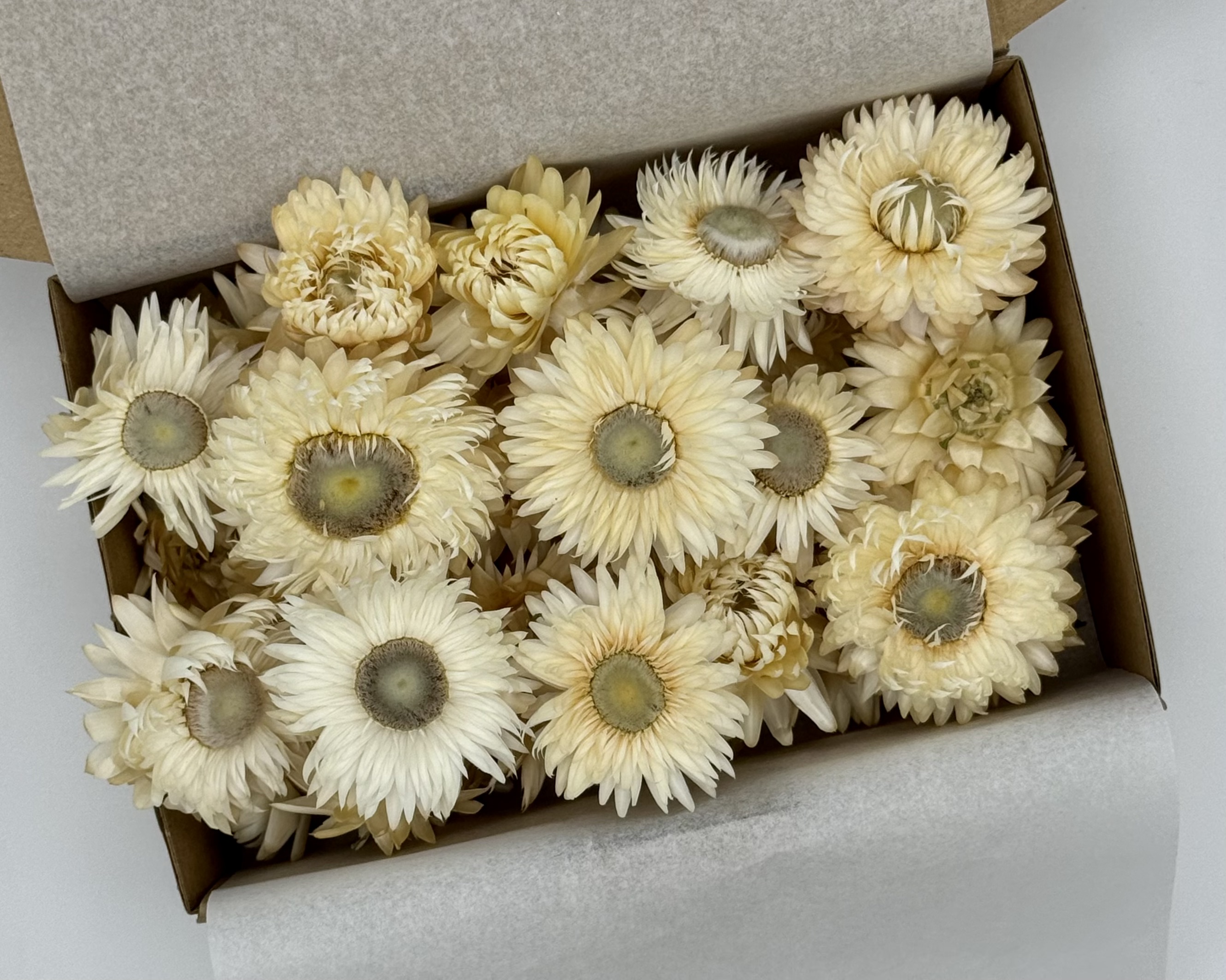 Jede Strohblumenbox wird liebevoll von Hand für dich zusammengestellt, sodass jede Box einzigartig ist.