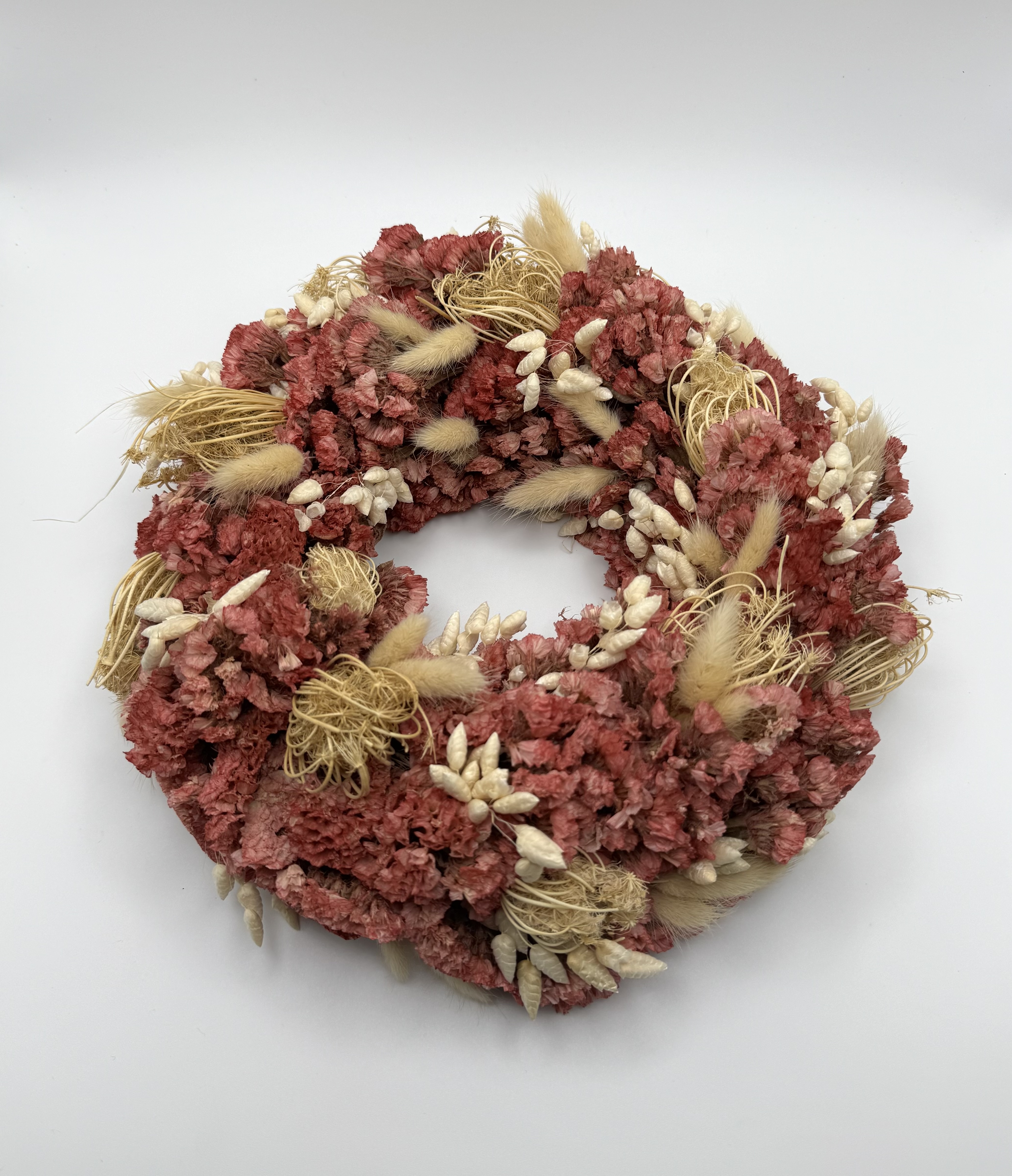 Jeder Trockenblumenkranz wird liebevoll von Hand für dich zusammengestellt, sodass es zu einer leichten Abweichung vom Beispielbild kommen kann.